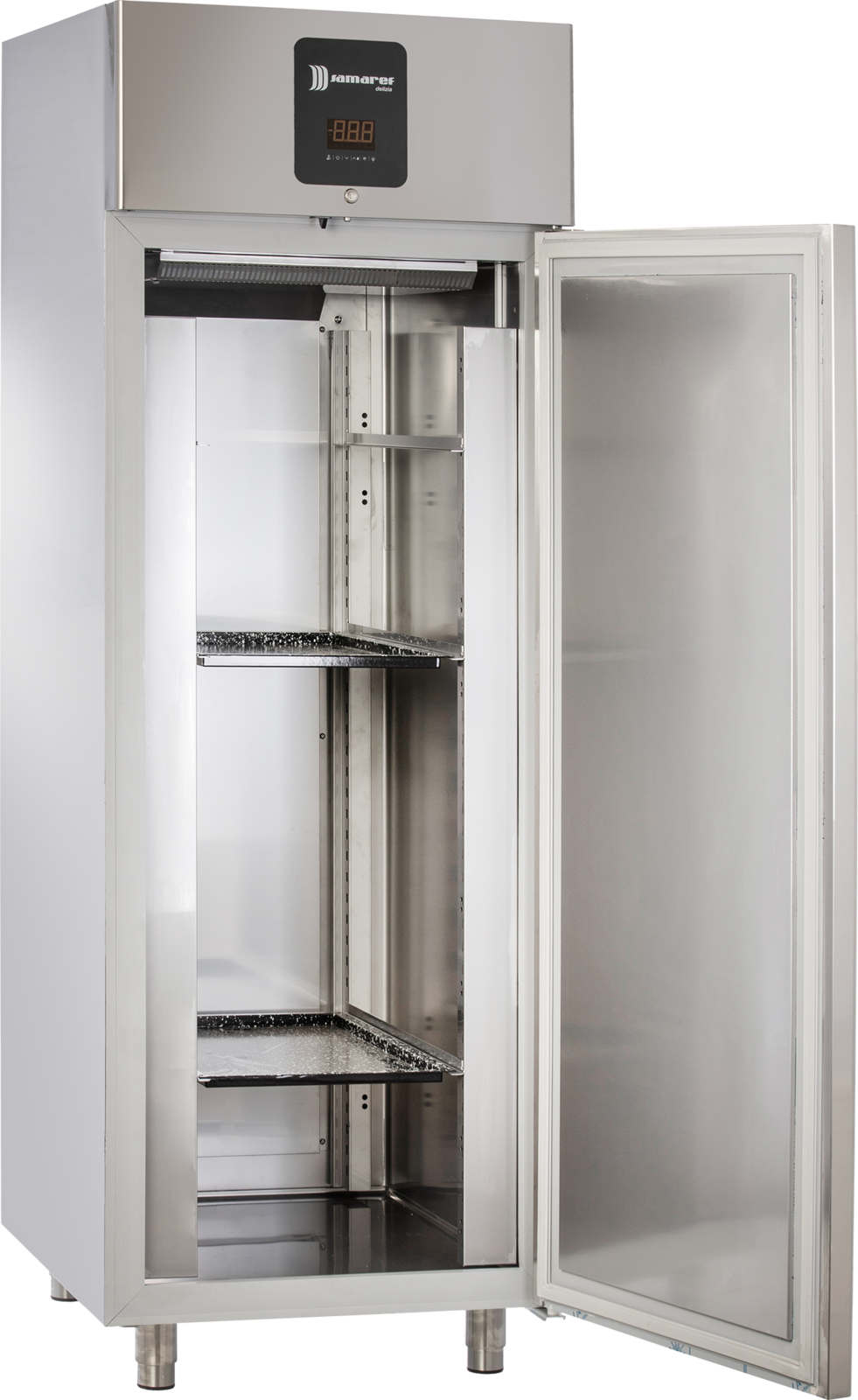 Hergestellt als Premiumgerät in Italien, überzeugt der Kühlschrank durch seine robuste Konstruktion aus CNS AISI 304 im Innen- und Außenbereich (ausgenommen der Motorraum, die äußere Rückseite und der äußere Boden, die aus verzinktem bzw. kolaminiertem Stahl gefertigt sind). Die intuitive elektronische Steuerung ermöglicht eine einfache Bedienung, während der verdampferfreie Innenraum und der beschichtete Verdampfer für eine lange Lebensdauer und hygienische Bedingungen sorgen.