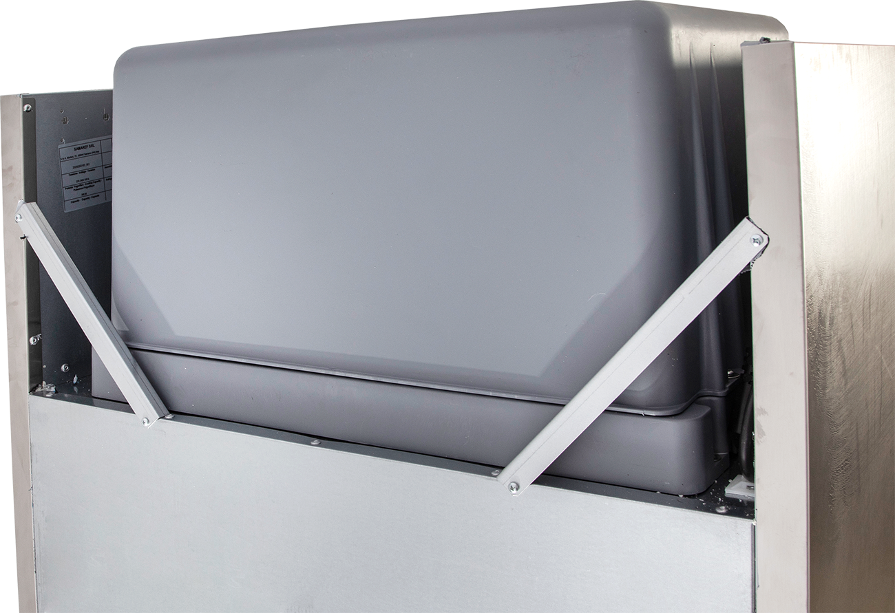Die selbstschließende Tür mit einer durchgehenden Griffleiste, einem Schloss und einem Türanschlag, der ohne Umbaukit von rechts auf links wechselbar ist, sorgt für zusätzlichen Komfort. Bei einem Öffnungswinkel von 105° bleibt die Tür in einer offenen Position stehen, um das Be- und Entladen zu erleichtern. Die servicefreundliche Türmagnetsteckdichtung lässt sich einfach austauschen, wodurch Wartungsarbeiten minimiert werden.