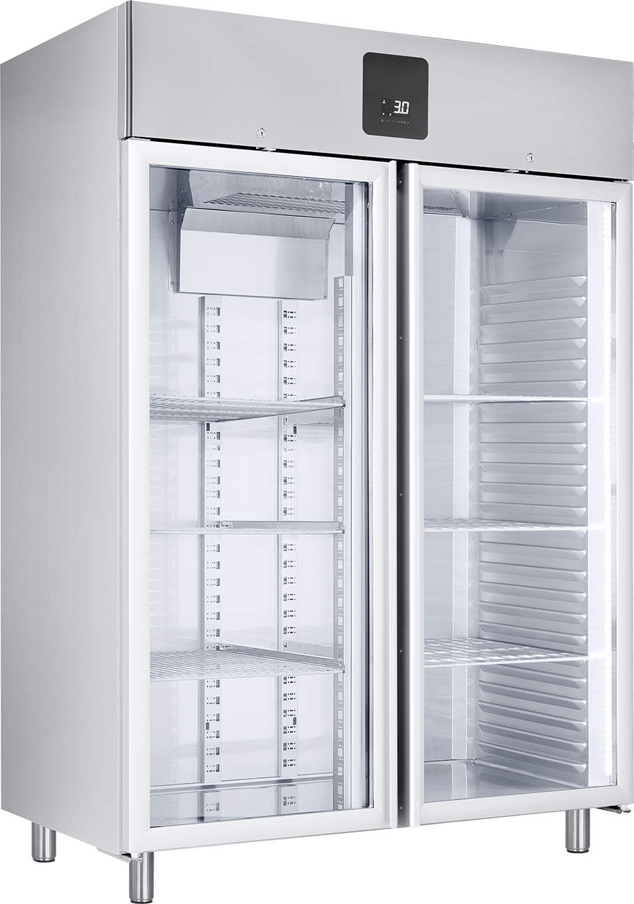 Die selbstschließende Glastür mit Schloss, eine ergonomisch eingelassene Griffleiste und die leicht wechselbare Türmagnetsteckdichtung erhöhen Komfort und Servicefreundlichkeit. Ergänzt wird das System durch energiesparende Heißgas-Tauwasserverdunstung, höhenverstellbare CNS-Füße sowie die Möglichkeit zur WLAN-Anbindung via ICE CONNECT (optional).