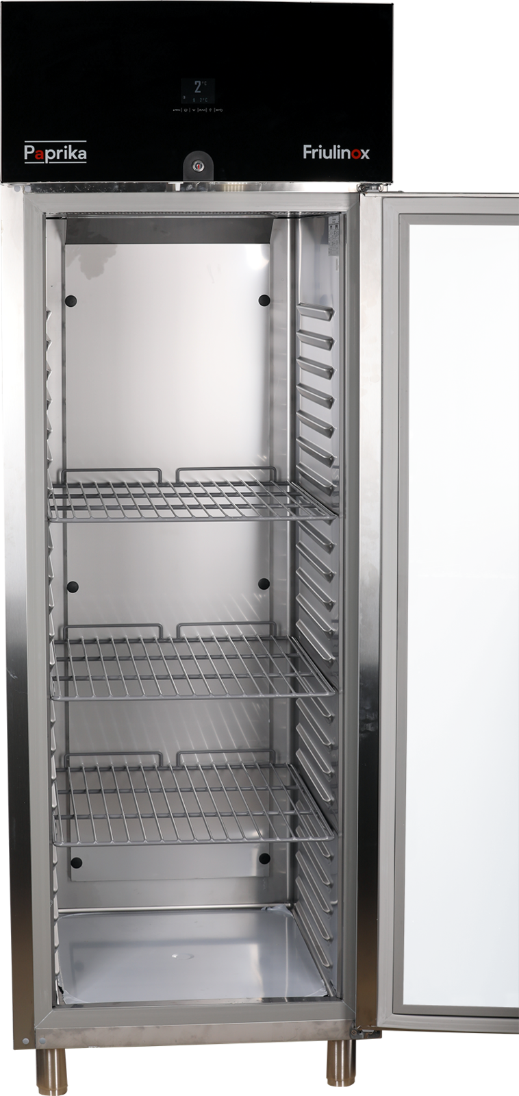 Umluft-Gewerbe-Tiefkühlschrank mit Energieklasse B. Monoblockbauweise gefertigt mit bis zu 94 mm Energiespar-Isolierung und umweltfreundlichem Kältemittel R290. Außenmaterialdreiseitig Edelstahl CNS 18/10 AISI 304 Scotch-Brite verschliffen. TouchScreen-Steuerung mit digitalem 2,8“ großem Display und digitaler Temperaturanzeige.