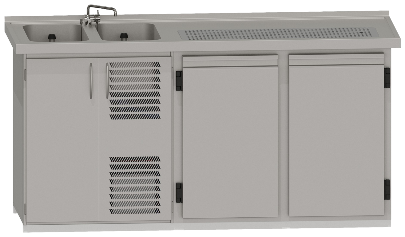 Getränketheke Bergamo 2 mit 2 Becken links und Abdeckung mit Aufkantung