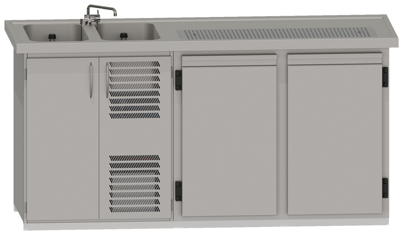 Getränketheke Bergamo 2 mit 2 Becken links und Abdeckung mit Wulstrand