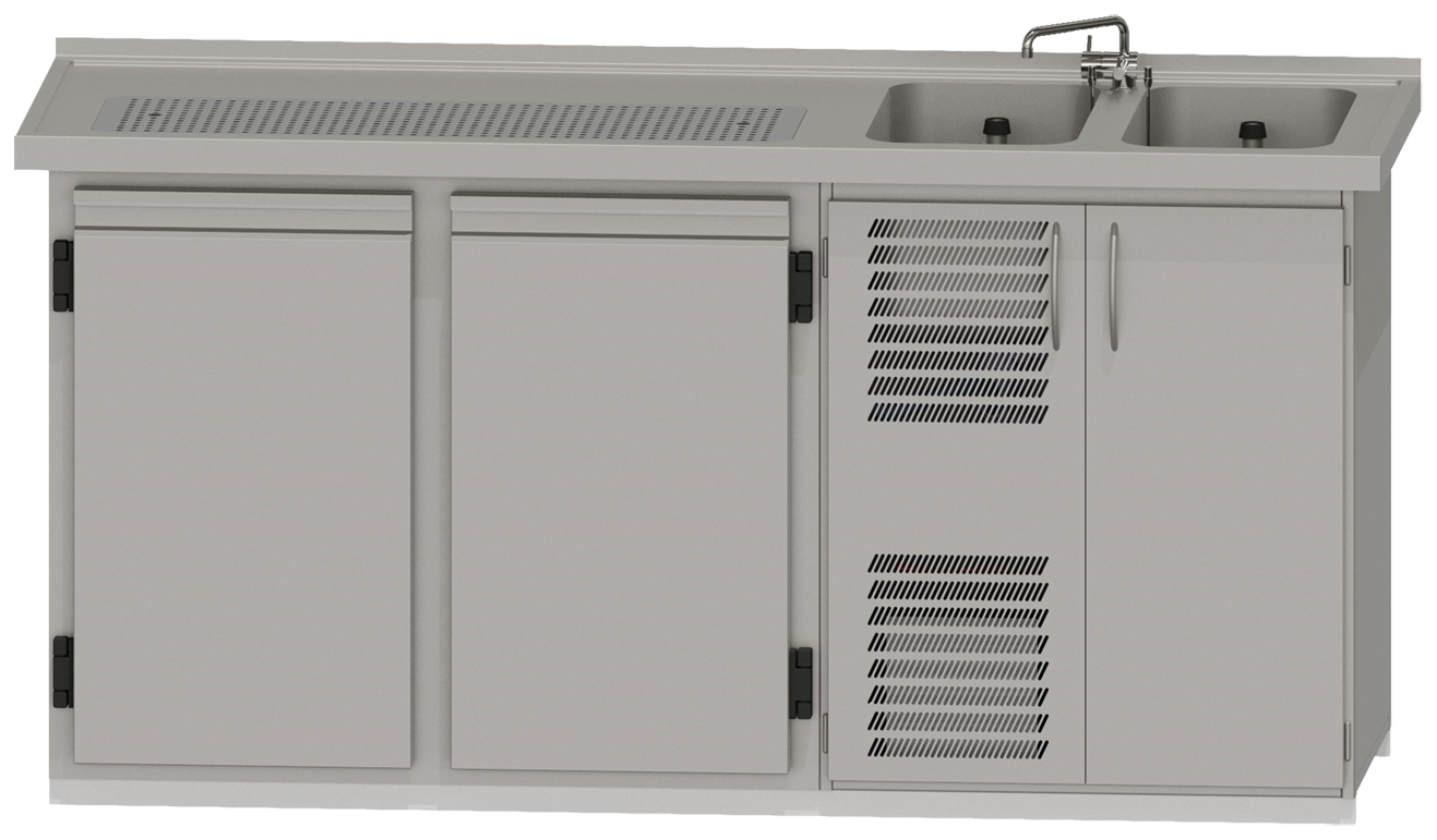 Getränketheke Bergamo 2 mit 2 Becken rechts und Abdeckung mit Aufkantung