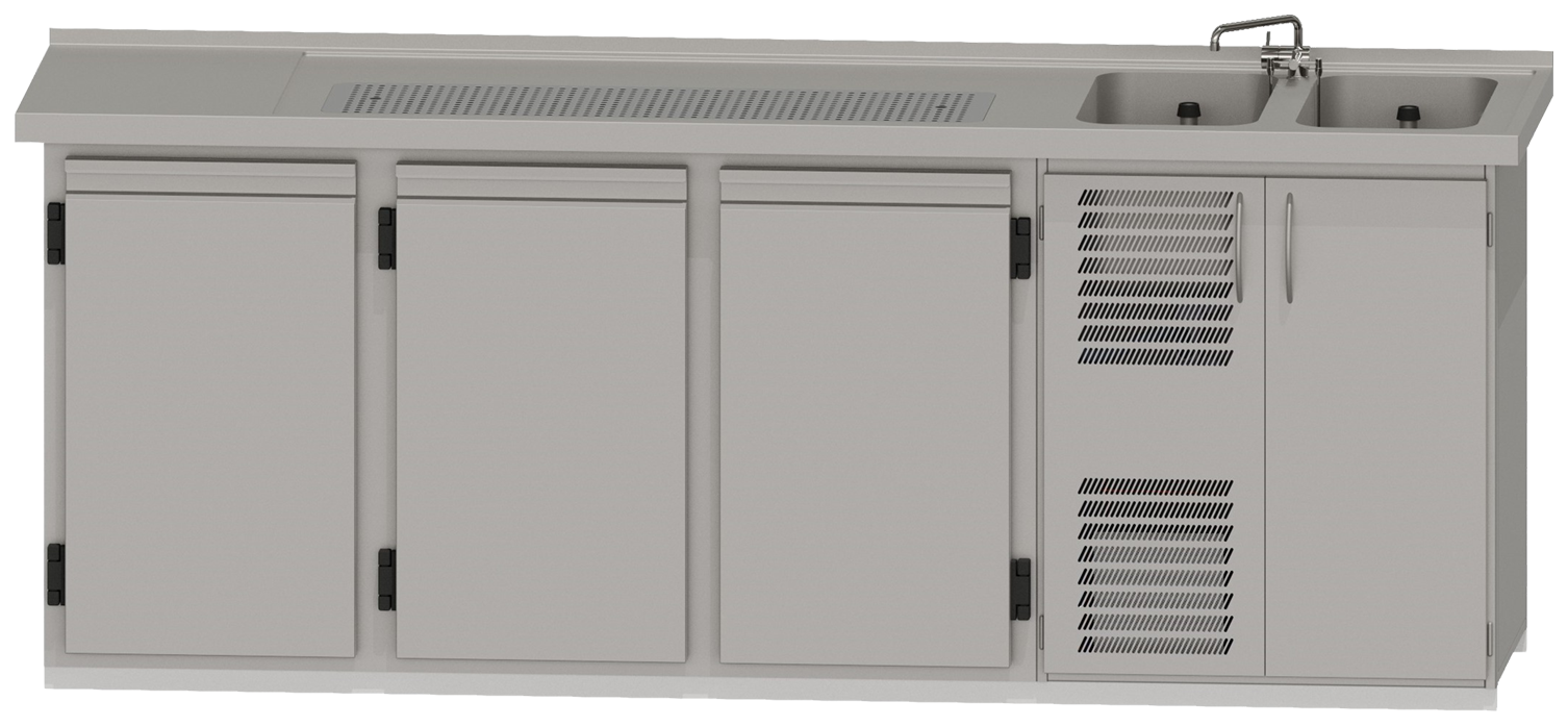 Getränketheke Bristol 2 mit 2 Becken rechts und Abdeckung mit Aufkantung