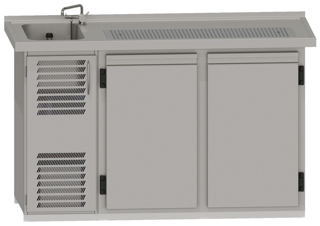 Getränketheke Paris 2 mit 1 Becken links und Abdeckung mit Aufkantung