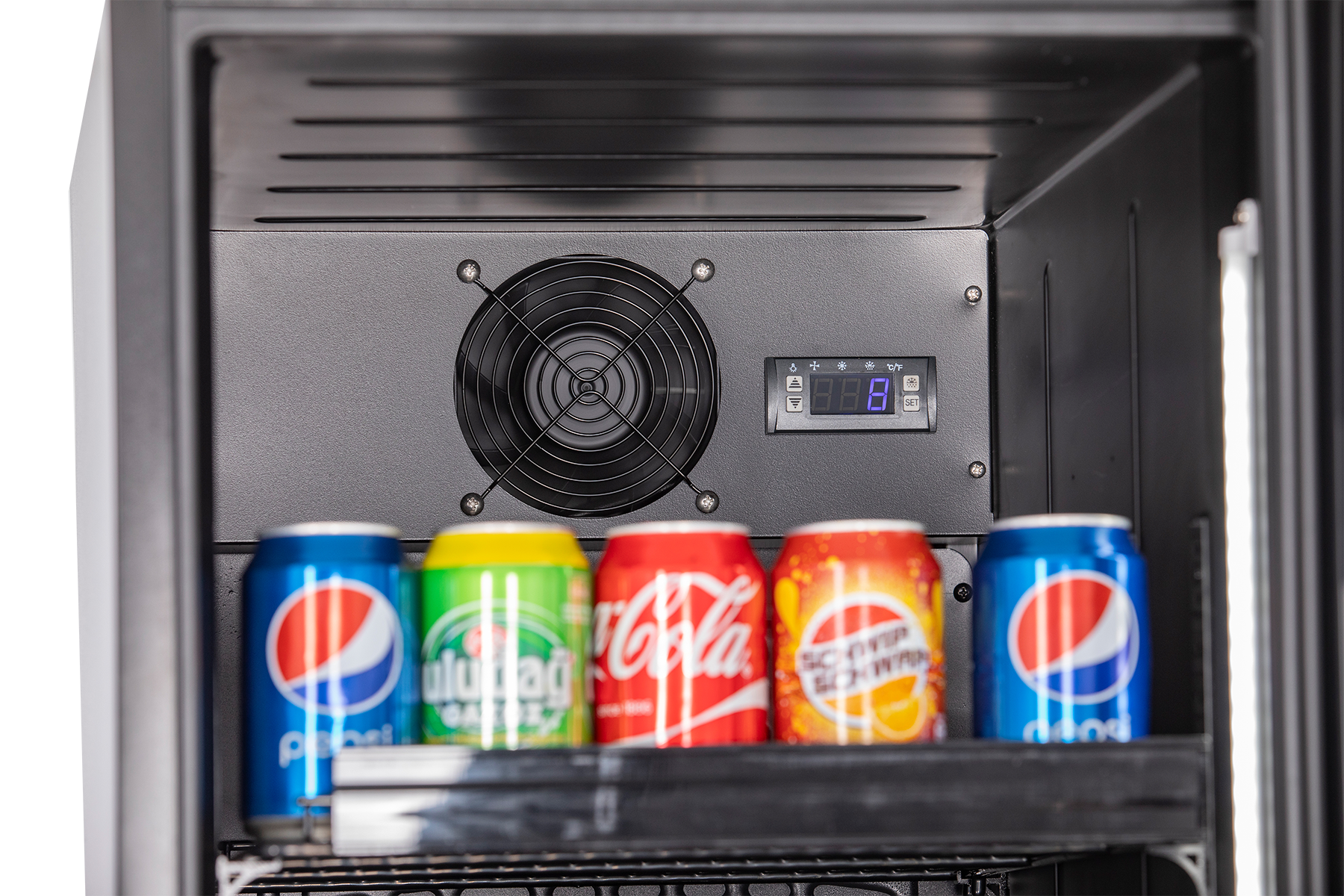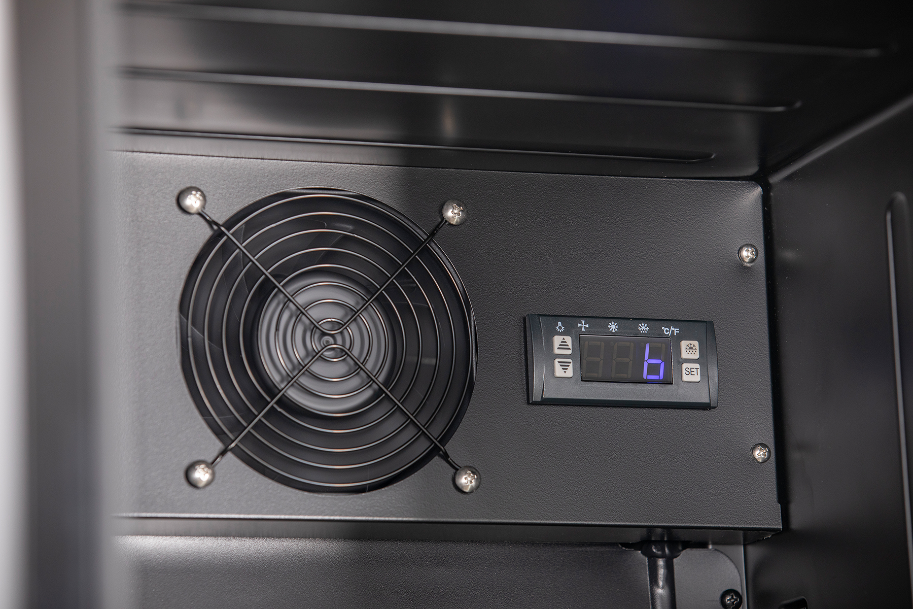 Die digitale Temperaturanzeige ermöglicht eine präzise Kontrolle der Innentemperatur, während die separat schaltbare vertikale LED-Innenbeleuchtung für eine optimale Präsentation der Waren sorgt. Die 3-fach isolierverglaste Tür mit Schloss bietet nicht nur eine exzellente Isolierung, sondern trägt auch zur Energieeffizienz des Geräts bei. Für zusätzlichen Komfort ist die Tür selbstschließend.