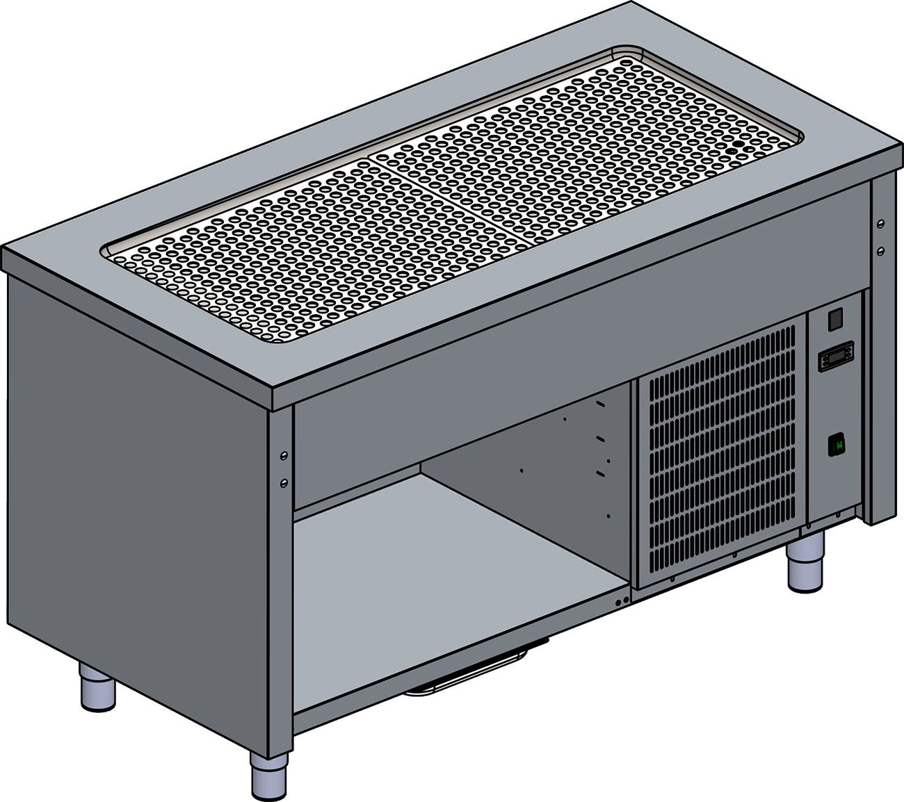 Die leistungsstarke Kühlplatte mit stiller Kühlung gewährleistet eine gleichmäßige Temperaturverteilung und sorgt für eine ansprechende Präsentation empfindlicher Speisen wie Desserts, Salate oder Vorspeisen. Die elektronische Steuerung mit digitaler Temperaturanzeige ermöglicht eine präzise Kontrolle im täglichen Betrieb – ideal für Kantinen, Buffetanlagen oder Freeflow-Konzepte.