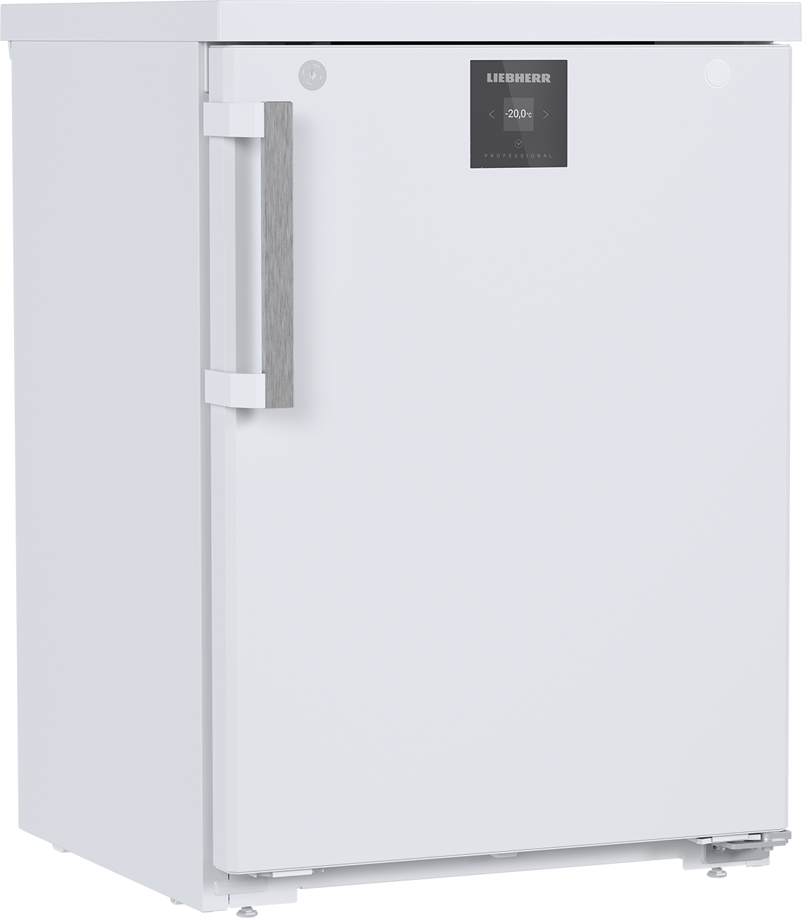 Das robuste Außengehäuse aus weiß lackiertem Stahlblech sowie der innen weiß beschichtete Kunststoff-Innenraum garantieren hohe Hygiene und einfache Reinigung. Die Volltür mit weißem Griff und rechtsseitigem Türanschlag fügt sich nahtlos in bestehende Küchenzeilen ein. Die abnehmbare Arbeitsplatte macht den Tiefkühlschrank vollständig unterbaufähig.