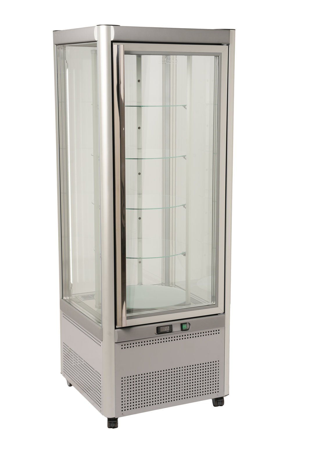 Die Panoramavitrine Prisma 401 mit Drehgestell ist eine hochwertige Panoramavitrine für die anspruchsvolle Warenpräsentation in Cafés, Konditoreien, Bäckereien und Gastronomiebetrieben. Mit ihrem edlen Design, der 360°-Rundumverglasung und modernster Kühltechnik setzt sie Ihre Produkte perfekt in Szene – und sorgt gleichzeitig für gleichmäßige Frische und Energieeffizienz.