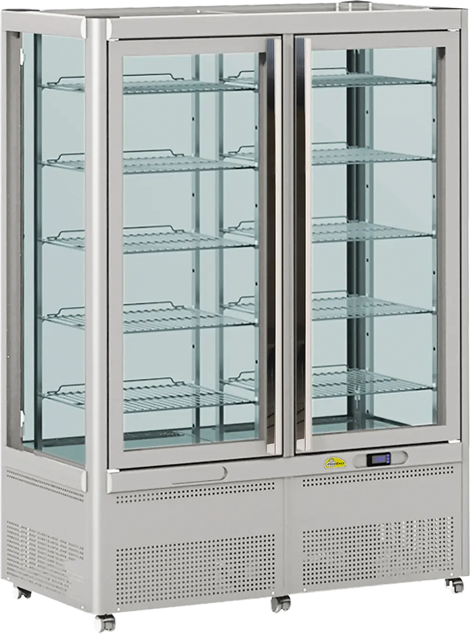 Die Prisma 801 überzeugt durch ihre vierseitige Isolierverglasung und die integrierte LED-Beleuchtung, die Torten, Kuchen und Desserts brillant ausleuchtet. Durch das Panorama-Design ist Ihre Ware aus jedem Blickwinkel sichtbar – ein echter Blickfang im Verkaufsraum.