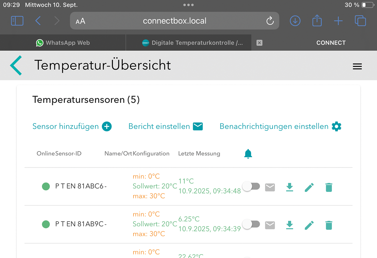 - Set inkl. 5 Blutooth Low Energy Temperatursensoren